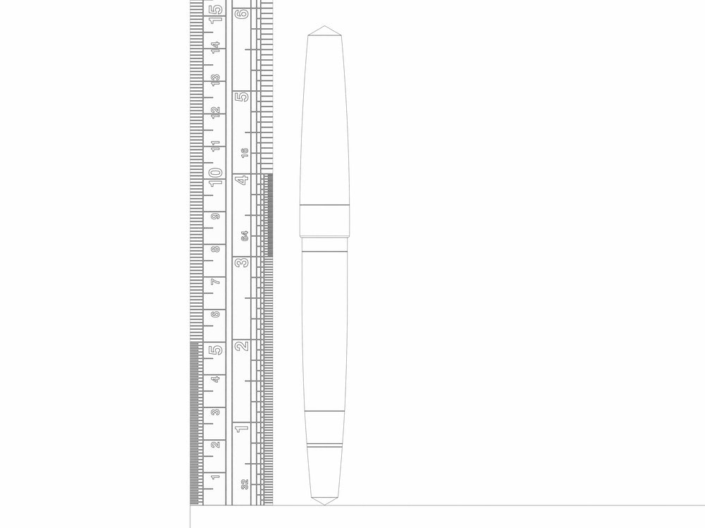 Reference image showing the fountain pen’s true size.